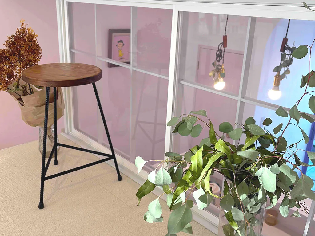 デザイナーズマンションのつくりを活かし、階段を少し上がった先に広がる当サロンは、まるで「秘密のアトリエ」のよう。